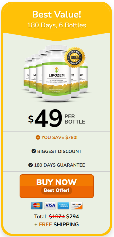 In summary, Lipozem stands out as an essential dietary supplement for those looking to lose weight in a healthy and sustainable way. With its combination of natural and scientifically proven ingredients, it offers a multifaceted approach to weight loss, promoting an accelerated metabolism, appetite suppression, and increased thermogenesis. Additionally, Lipozem boosts energy levels and digestive health, making it a valuable addition to your daily routine. The commitment to quality and safety makes Lipozem a reliable choice in the supplement market. By incorporating Lipozem into your routine, you are investing not only in weight loss but also in enhanced overall well-being. If you are ready to achieve your health goals and lose weight effectively, I highly recommend purchasing Lipozem through the official website by clicking the button below.